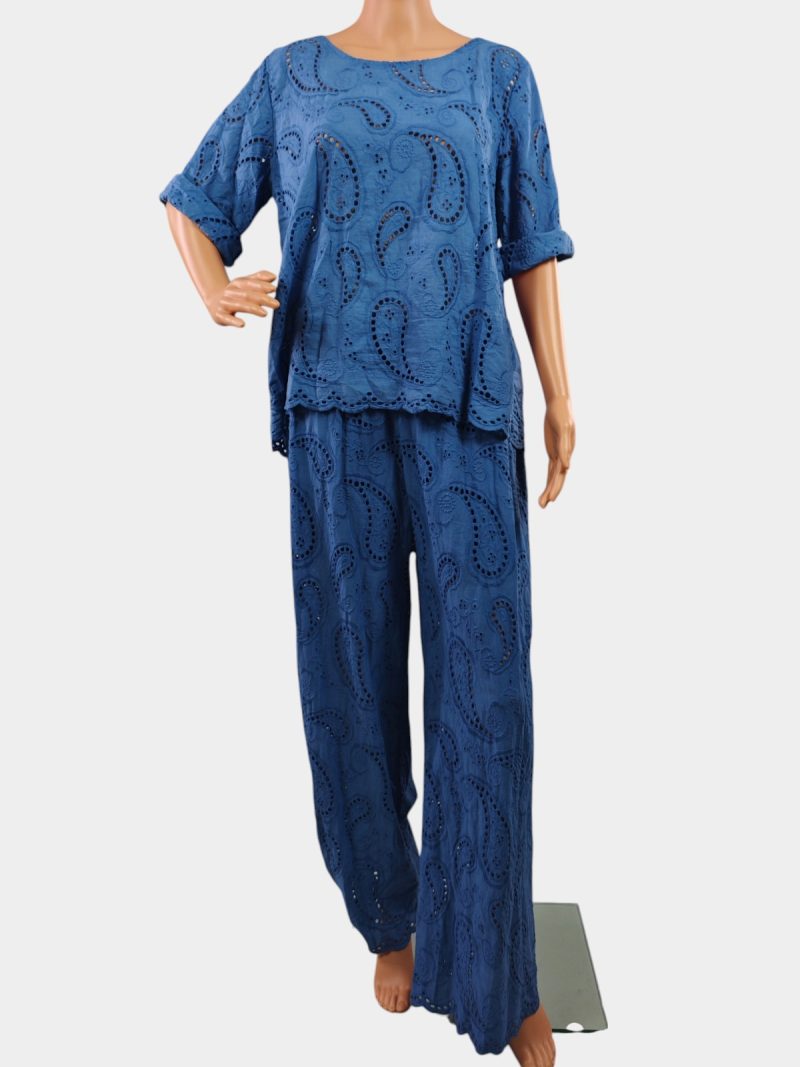 👗✨ Стил и удобство в едно – този дамски комплект е създаден с внимание към детайла и идеята да ви накара да се чувствате добре през целия ден. Изработен от висококачествена, ефирна материя с ефектна бродерия и фина перфорация, този модел съчетава лекота и класа.