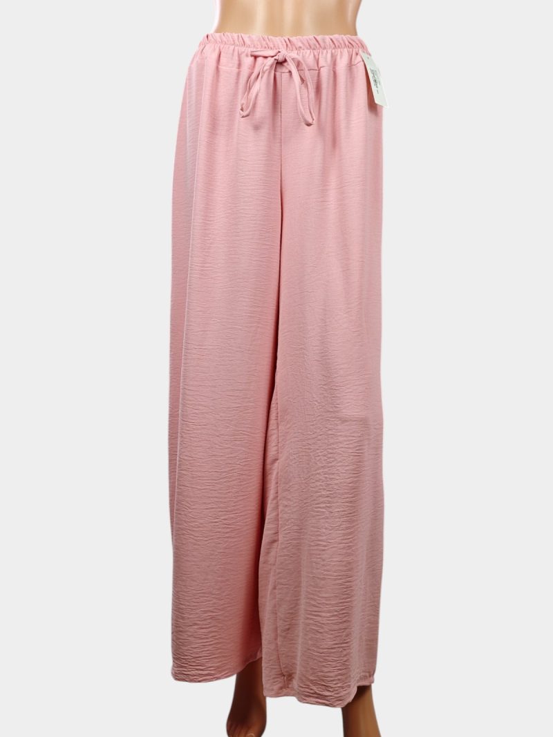 Тези свободни дамски панталони са перфектният избор за жени, които ценят удобството и елегантната визия в ежедневието. С високата си талия и ластичен колан с връзки, моделът осигурява идеално прилягане без компромис с комфорта.