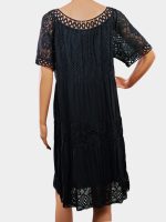 🌸 Дизайн: Изработена с богати дантелени мотиви в горната част, по ръкавите и долния край, тази рокля впечатлява с детайлност и женственост. Кръглото деколте с изрязани орнаменти придава ефектен завършек.