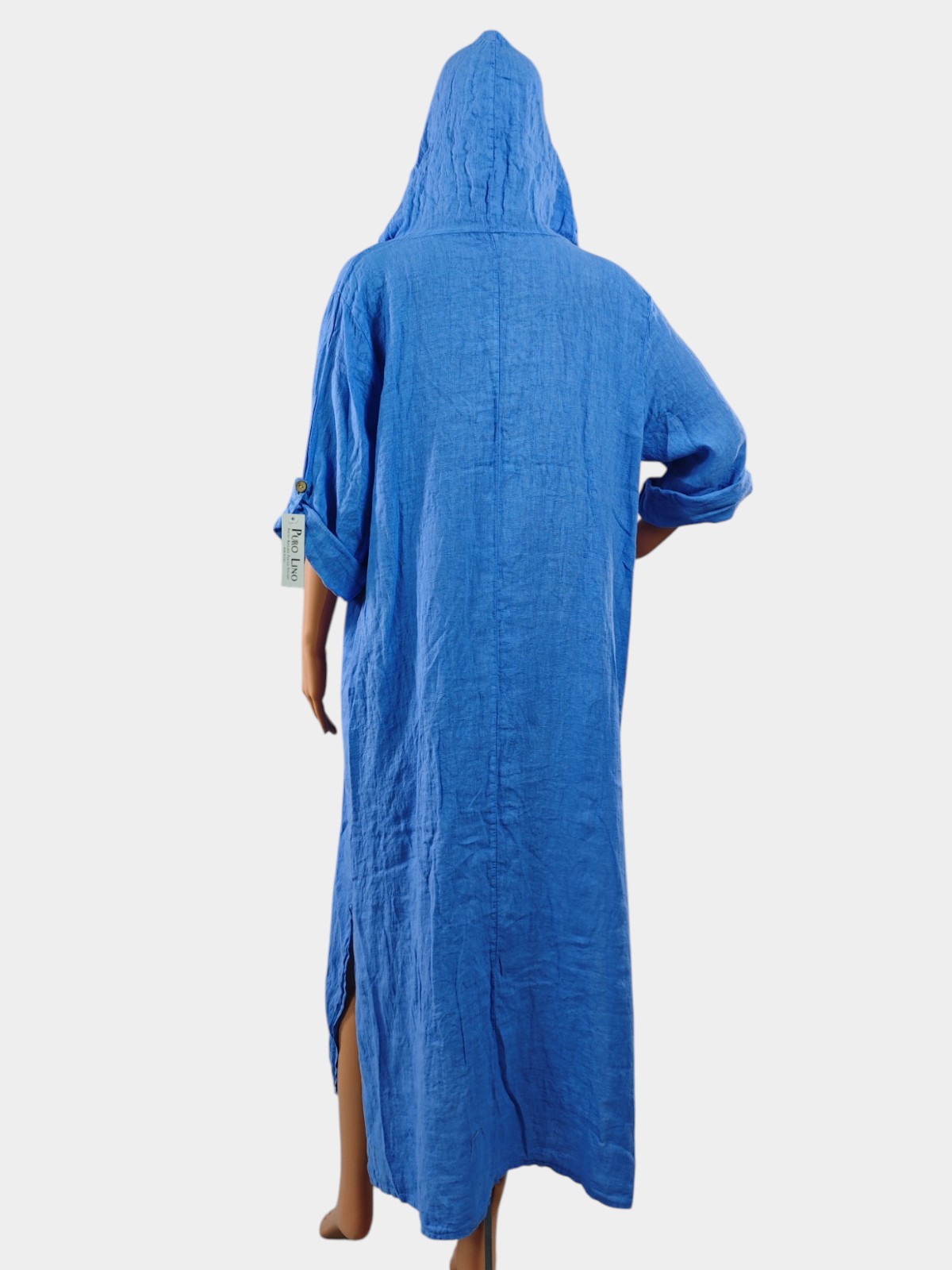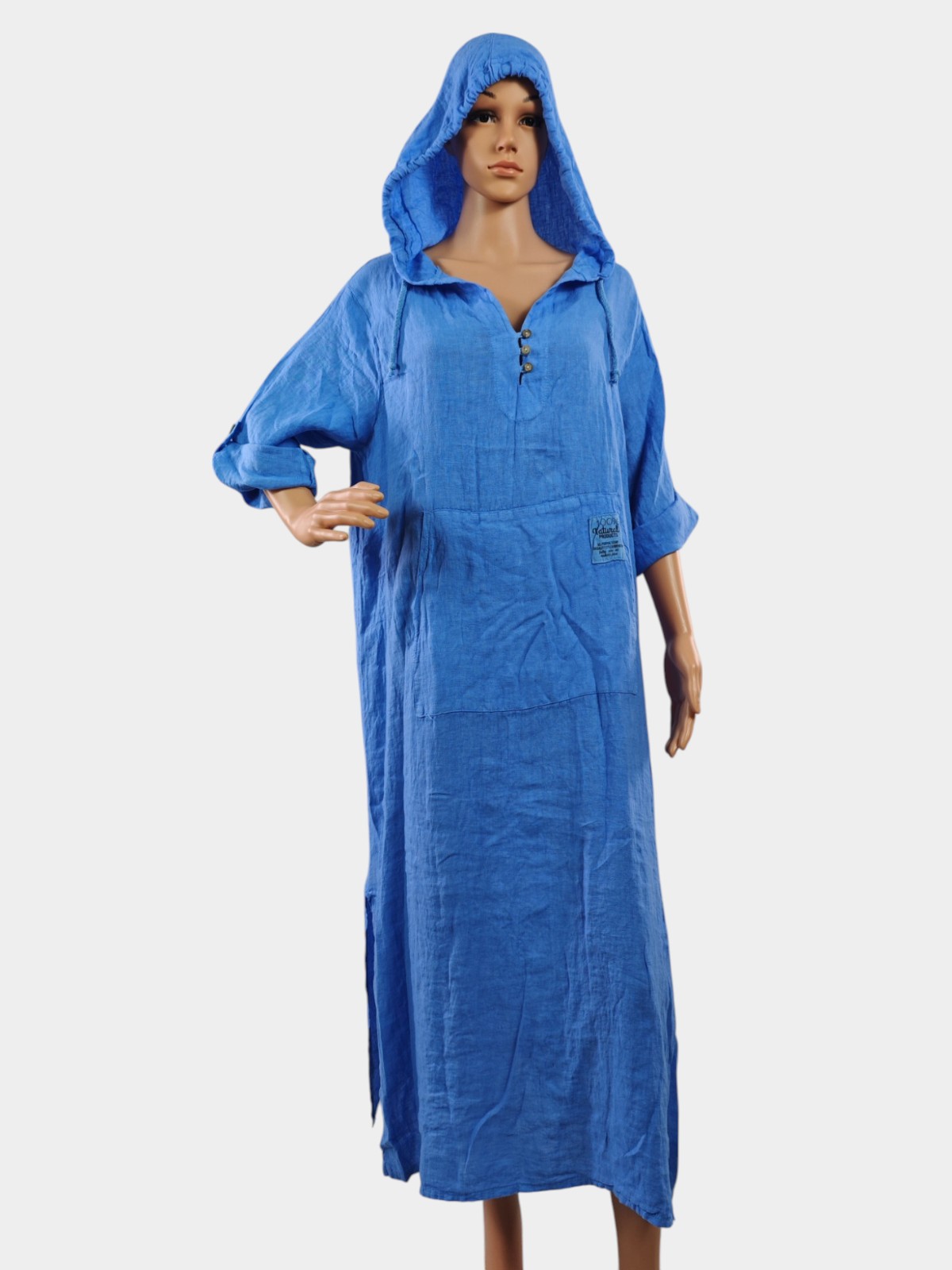 Тази дамска ленена рокля с качулка е създадена за жени, които ценят свободата на движението и естествените материи. Леката и дишаща структура на плата осигурява усещане за прохлада през топлите дни, а свободната кройка гарантира максимално удобство.