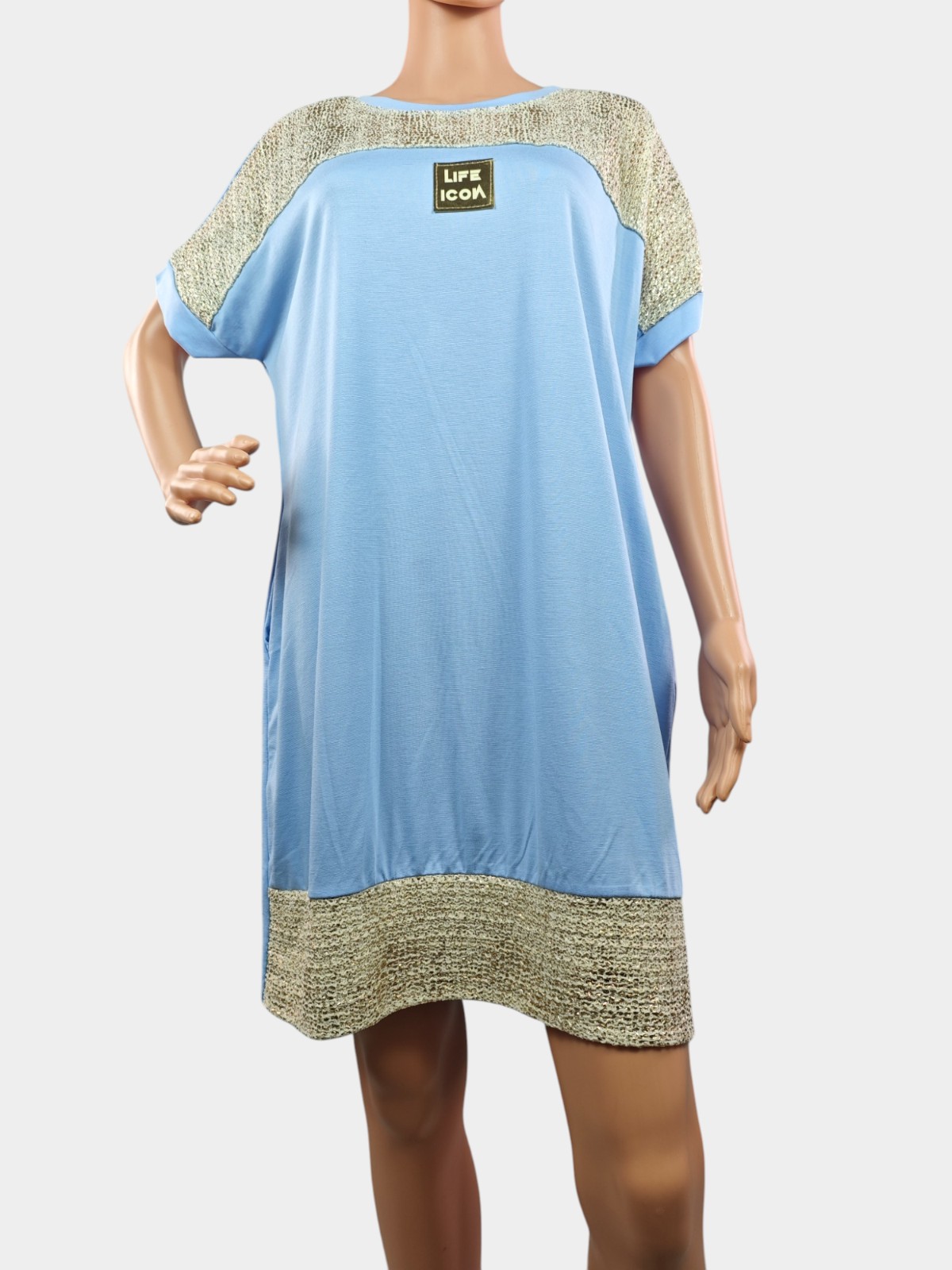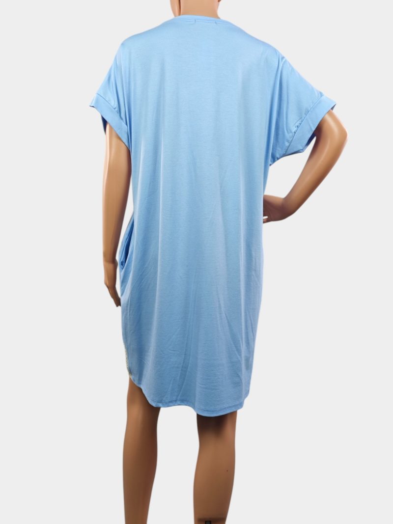 Тази свободна рокля с модерен дизайн и блестящи детайли е създадена за активната жена, която иска да изглежда стилно, без да жертва удобството. Идеалният избор за ежедневието – от разходка до кафе с приятелки.