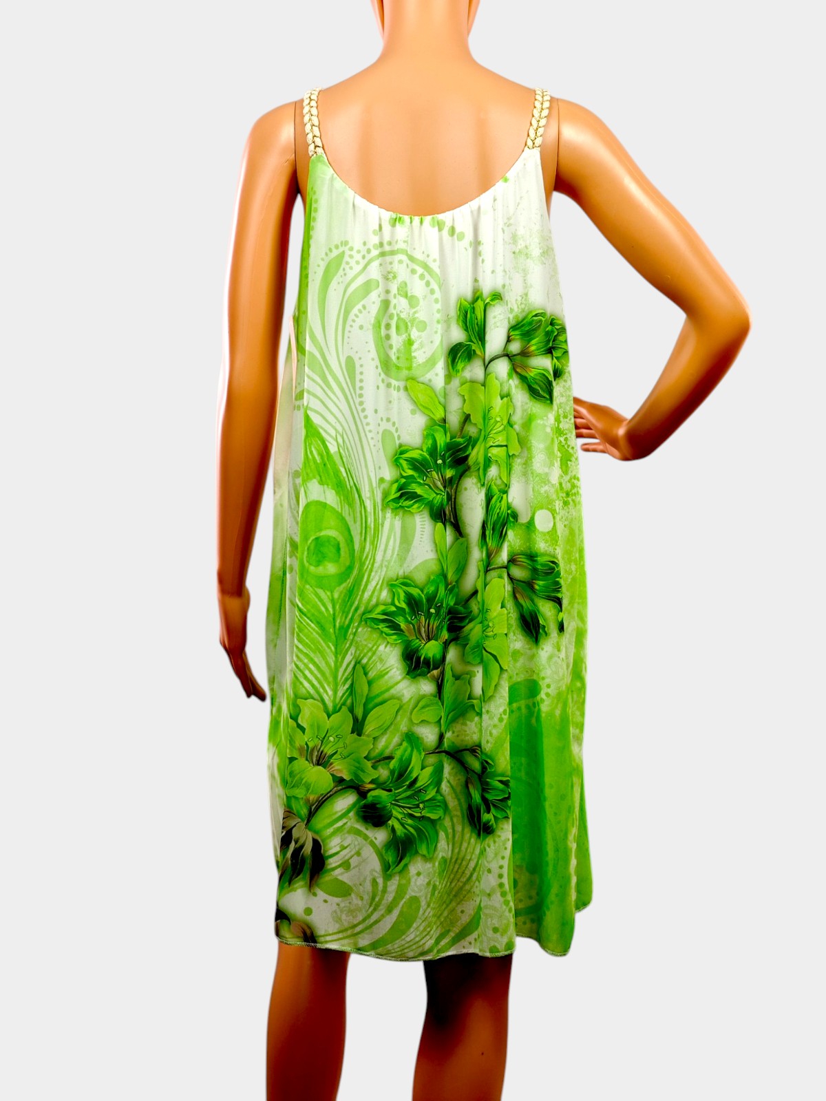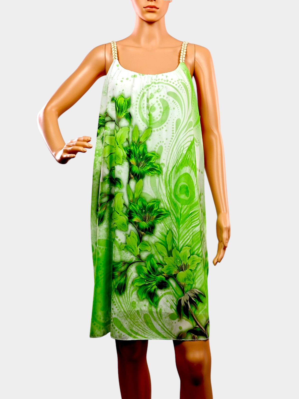 🦋 Дизайн: Впечатляващ принт с богати цветя и деликатни пеперуди, който създава усещане за свежест и романтика. Презрамките са изработени с фини декоративни елементи, които придават допълнителен блясък и елегантност.
